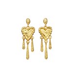 Flotte øreringe i forgyldt sølv formet som et hjerte, med små gyldne elementer der falder som tårer.