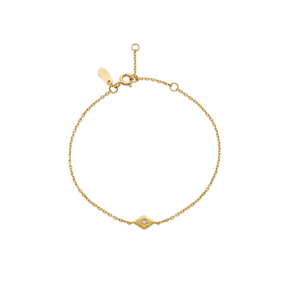 Et smukt armbånd med en harlekinformet vedhæng hvor en lille zirkon stråler fra.