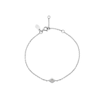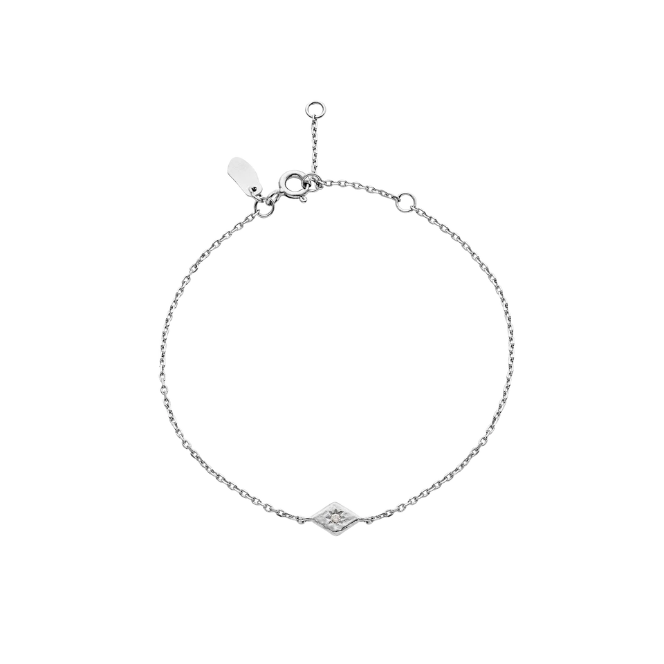 Et smukt armbånd med en harlekinformet vedhæng hvor en lille zirkon stråler fra.