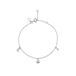 Et flot armbånd med 3 små vedhæng der symboliserer månefaserne, fuldmåne, halvmåne og den klare stjerne med en zirkon der blinker.