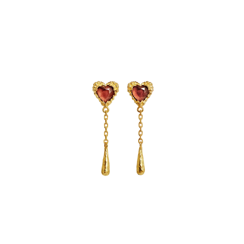 Kærligheden flyder fra Lady øreringen, dryppende som gyldne tårer fra pink granat hjerter og symboliserer kærligheden.