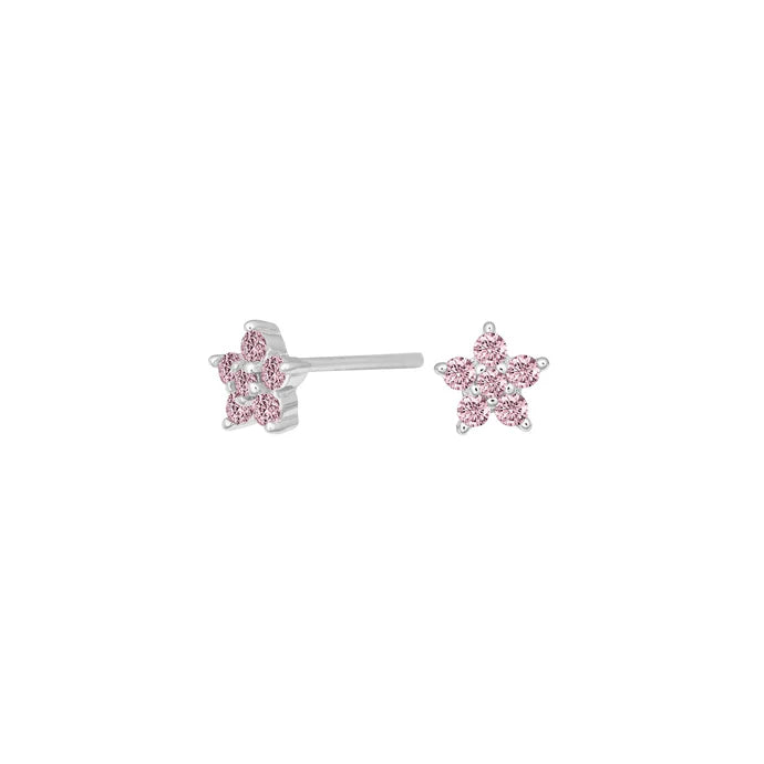 En flot øreringe formet som en fin blomst med lyserøde zirkoner der blinker på øret. Den lyserøde zirkon symboliserer kærlighed. Den lille ørering passer perfekt til prinsessen der elsker pynt og glamor