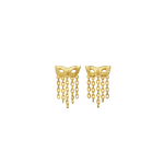 Flotte øreringe formet som en maske fra teaterets magi med skønne gyldne kæder.