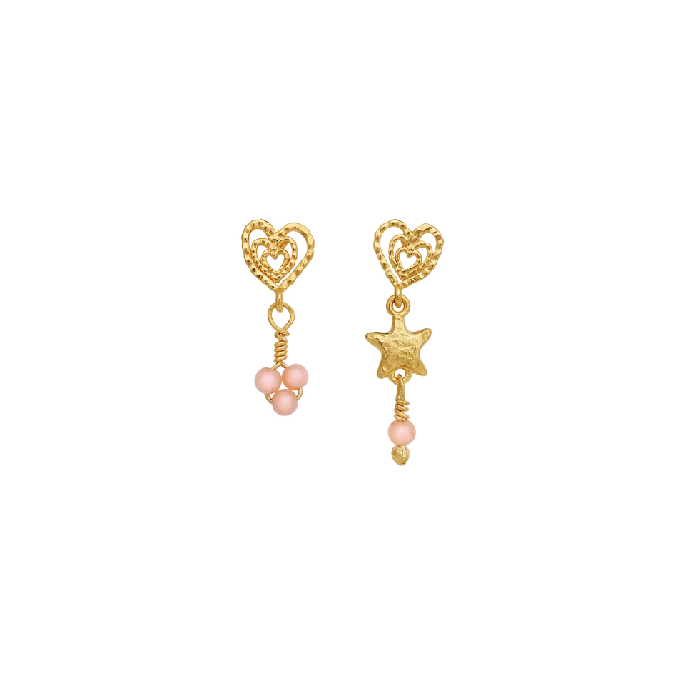 Maanesten Øreringe i Forgyldt Sølv med Hjerter, Stjerner og Pink Opal 10115A