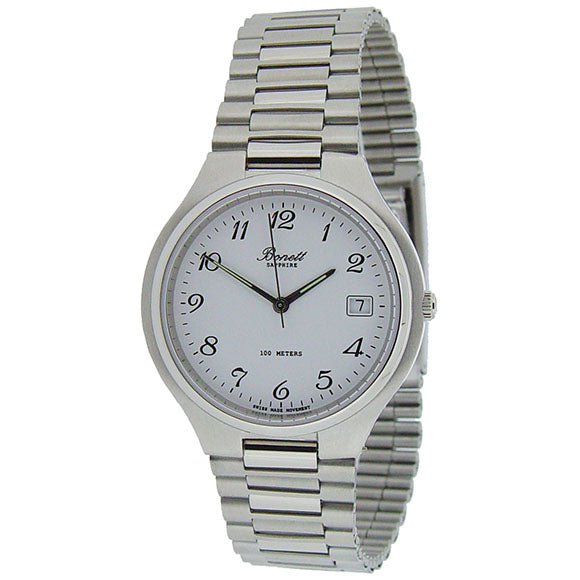 Ole Brix Bonett Herreur Stål Safir Glas Dato Hvid Skive 836H