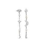 Flotte øreringe der hænger med mange symboler, ferskvandsperler og zirkoner. De er asymmetriske hvor den ene er med harlekinform, halvmåne og ferskvandsperler. Den anden med Horus øje, stjerne og ferskvandsperler. Rigtige øreringe med teaterets dramatiske univers med mange kunstneriske detaljer. Sissone er fra Maanestens nye kollektion Urban Teatre. AW25 kollektionen er en hyldest til teaterets magi og de forunderlige historier der fortælles. Indtag rampelyset med Sissone. Med ferskvandsperler, halvmåner og glimtende zirkoner fanger de elegancen, som kun en danser midt i et spring besidder. De stilfulde øreringe kan kombineres med andre styles og giver et raffineret udtryk.