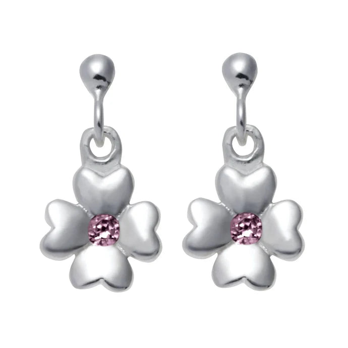 Søde ørehænger formet som en blomst med en pink zirkon i midten. Øreringen er en god opstart til pigerne, der begynder at gå med hænge øreringe, de er 7,4mm lange.